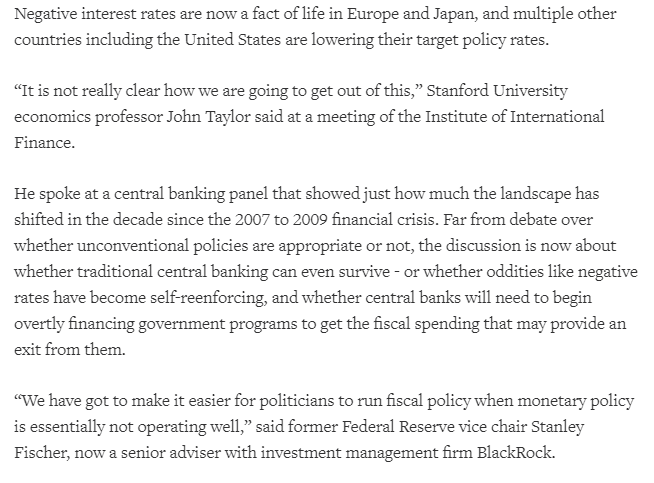 Keskuspankkiirit kokoustivat jälleen viikonloppuna. Yksi akateemikkosuosikeistani, John Taylor, latasi Reutersin mukaan aika kovaa tekstiä rahapolitiikan tehottomuudesta: