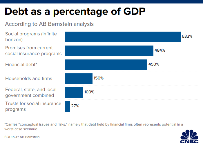 Noista iso osa yleensä tällaisissa laskelmissa on rahoittamattomia vastuita julkisiin menoihin. Hyvin teoreettinen konsepti, jota kyllä kaikki BOOM DOOM-huutelijat jenkeissä tykkäävät käyttää (kuten tuossakin jutussa varoitettiin).