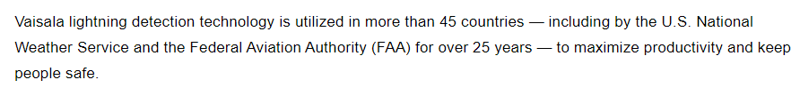Vaisala tunnetaan myös salamahavainnoinnin osaamisestaan ja salamahavaintoverkoistaan , joita on toimitettu vuosien aikana yli 45 maahan.