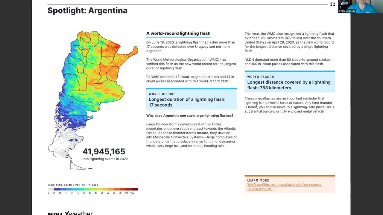 Meteorologi Dan Skoffin tubekanavalta löytyy Vaisalan Xweatherin salama-asiantuntija Chris Vagaskyn haastattelu, jossa hän kertoi tarkemmin vuoden 2022 salamaraportin sisällöstä. Kesto 20 min.