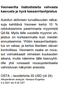 Veoneer udsendte i dag en fremragende Q4-rapport. Omsætningen i Q4 overgik konsensus med over ti procent, og der forventes en organisk vækst på over 25% for dette år.