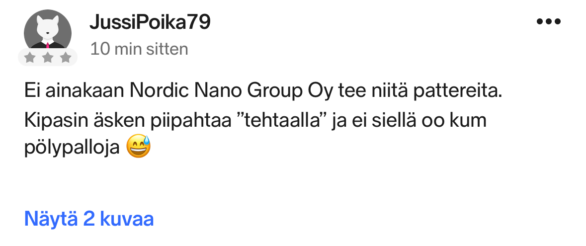 Hopefully very soon indeed! Maybe to the Battery Doctor (Akkutohtori) for testing. If everything is just empty hype or a scam, they’ve certainly got some nerve.