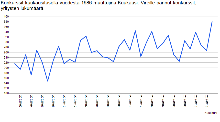Ja kun tähän lisätään data, että konkurssit yhä kasvussa. Joka tunnetusti ennakoi hieman työttömyyttä, voidaan arvioida, että ainakin hieman synkemmäksi tunnelmissa vielä mennään.