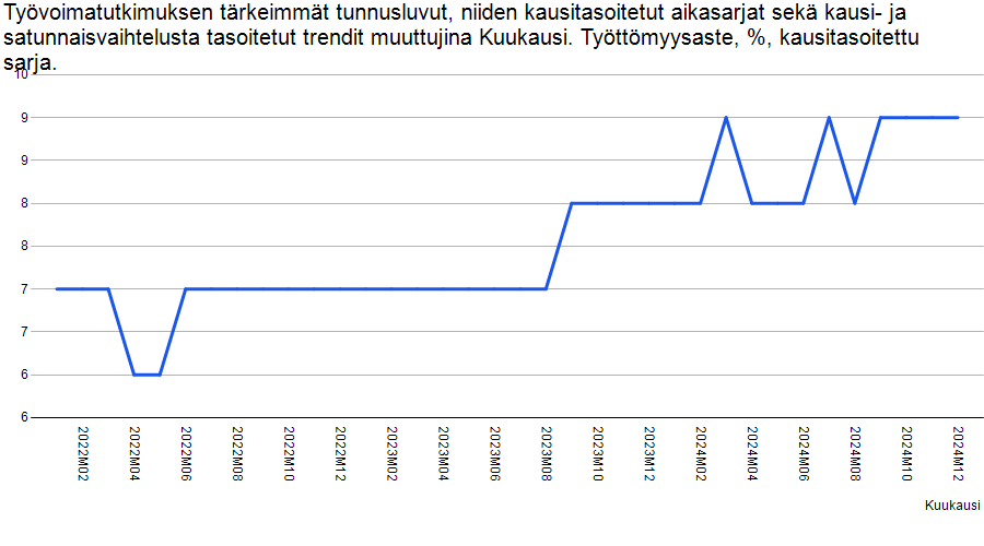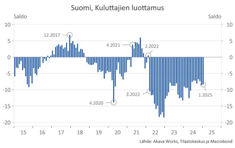 Ja koska työttömyys on indikaattori, joka tappaa kulutuksen täysin (työtön + lähipiiri) ja työttömyydessä ei ole vielä nähty edes käännettä. Jo tämä 01/25 tilasto on valitettavasti riittävä Q1 vaisuntamiseen.