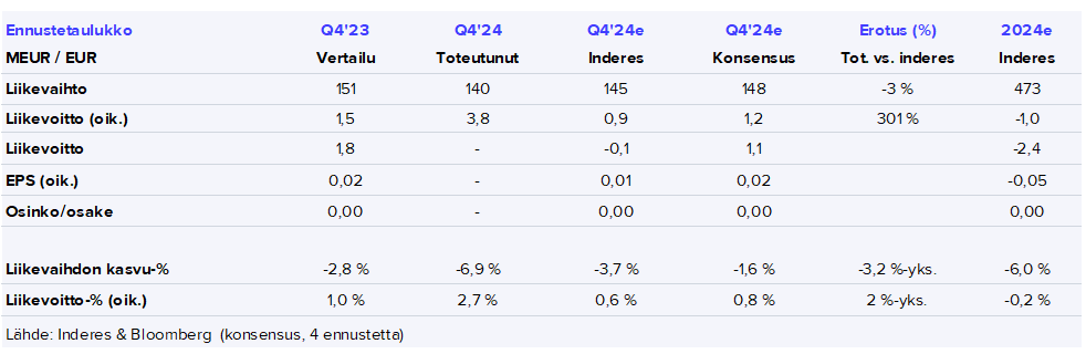 Pohjoismaiden 2025 myyntinäkymien osalta yhtiö oli vaitonainen ja korosti ettei odota markkinalta tulevan apua. Markkinaosapuolilla näyttää olevan yhtenäinen konsensus markkinasta, sillä Verkkis on toistanut samaa lausetta.