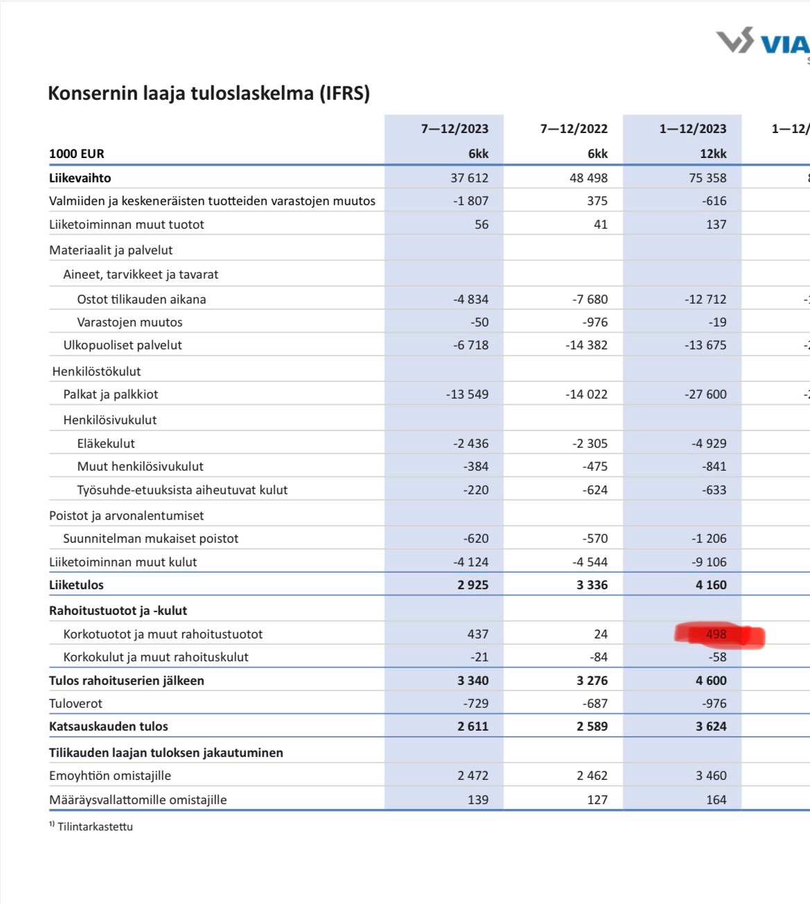 Tarkasteluajanjakson (1.1.2024-30.6.2024) luvut ovat tilintarkastamattomia (IFRS).