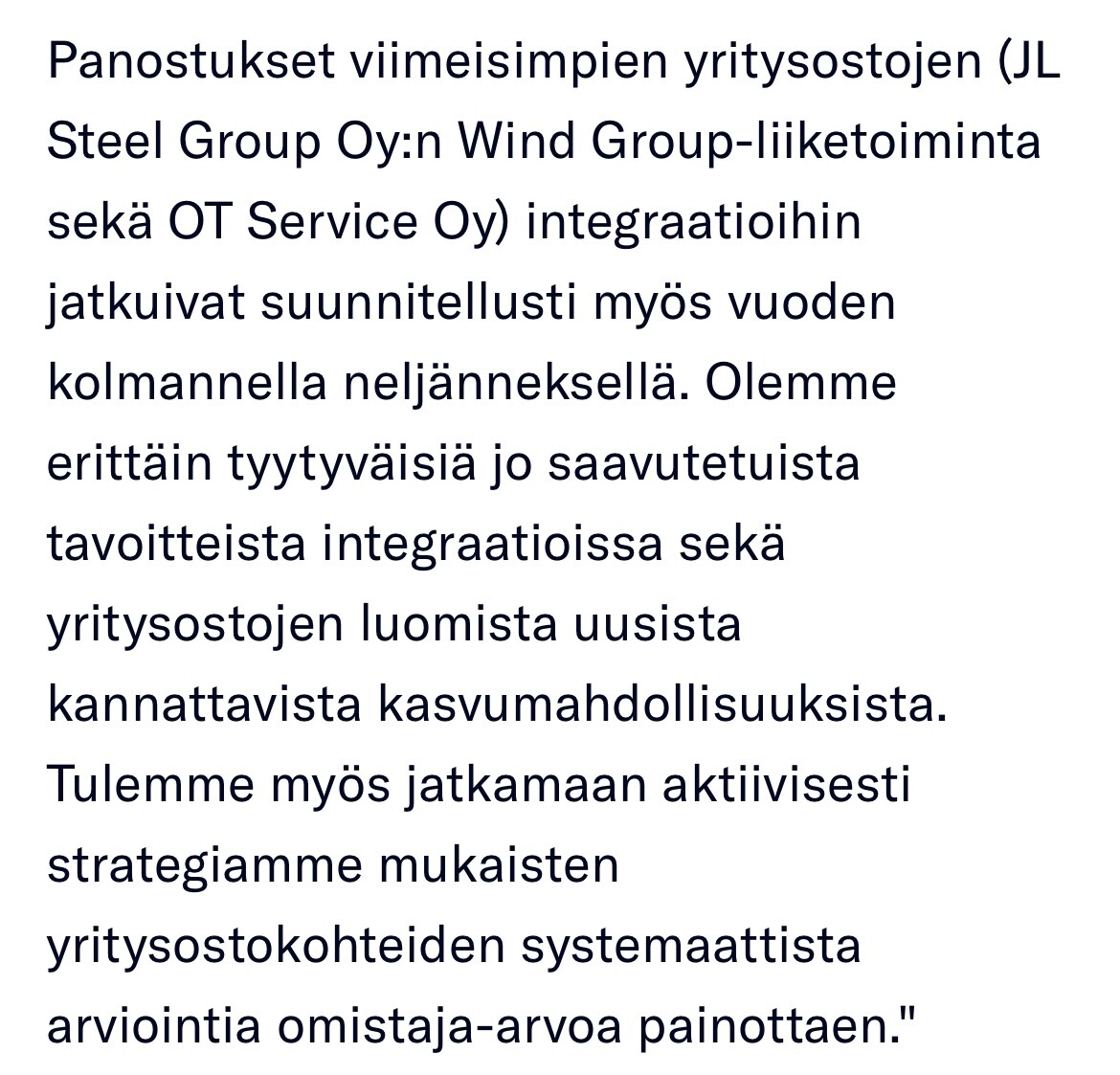 Onhan tässä aika paljon samaa kuin esim Relaisissa ja Aallon Groupissa. “Tylsää ja harmaata” mutta defensiivistä toimintaa, jossa orgaanisia kasvumahdollisuuksia ja yritysostoja pystyy tekemään järkihintoihin. Lentää aika hyvin monen tutkan alla. Kiva omistettava ![]()