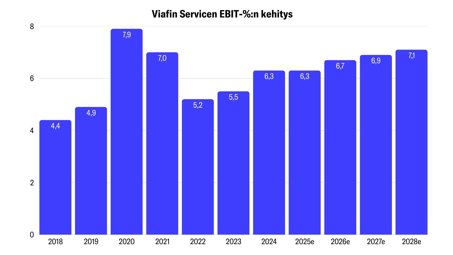 Markkinan kasvuvauhdin Viafin näkee hyvin maltillisena, käytännössä inflaation ja yleisen talouskasvun mukaisena. Tämä ei kuitenkaan ole ollut kasvun este historiassa, jonka vahva track record myös osoittaa. Teollisuuden putkistojen huolto ja kunnossapito on saanut rinnalleen vuosien saatossa mekaaniset huolto ja kunnossapitopalvelut, joka on vahvistanut yhtiön tukijalkoja putkistoliiketoiminnan vahvan historian rinnalla. Viimeisten vuosien aikana kasvu mm. sähköön, tuulivoimaan ja vetyyn on laajentanut tuotetarjoamaa ja avannut valtavan ison markkinan yhtiölle. Osa laajentumista on ollut käytännössä järkevä tehdä yritysostoilla, sillä esimerkiksi tuulivoimaloiden huoltaminen vaatii alan koulutuksen ja luvat, eikä kuka tahansa voi lähteä myllyjä huoltamaan, vaikka työkalut pysyisivätkin kädessä.