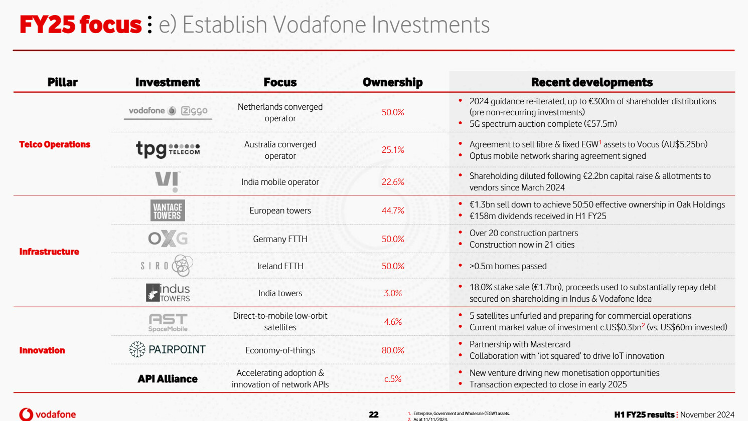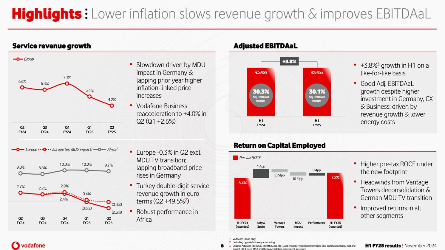 “Vodafone maintained its guidance for its 2025 financial year of adjusted earnings before interest, taxes, depreciation and amortisation after leases of about €11bn and adjusted free cash flow to be at least €2.4bn.”