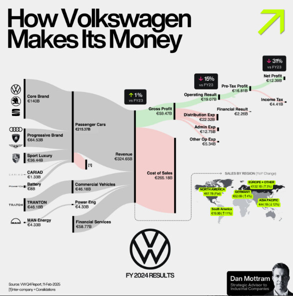 (06:38 GMT) Volkswagen Expects 2025 Revenue to Rise Despite Challenging Year (up to 5%) (06:30 GMT) *Volkswagen 4Q Oper Pft EUR6.15B (06:30 GMT) *Volkswagen: Analysts Saw 4Q Operating Profit at EUR5.27B (06:30 GMT) *Volkswagen 4Q Rev EUR87.38B (06:30 GMT) *Volkswagen: Analysts Saw 4Q Revenue at EUR85.4B (06:30 GMT) *Volkswagen Expects 2025 to be Demanding Year in Chinese Market With Price Discounts Increasing Further (06:30 GMT) *Volkswagen Proposes Ordinary Dividend of EUR6.30 (06:30 GMT) *Volkswagen Says 2025 is a Year For Stepping Up The Pace After Year of Crucial Decisions