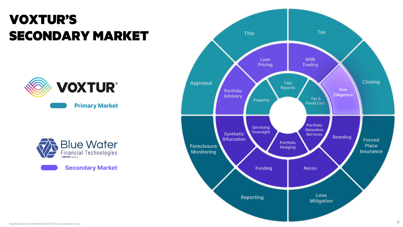 Haastattelussa selvisi että tuo on se kohta, missä Voxturin aiemmat palvelut liittyvät Blue Waterin secondary marketille tarjoamaan palveluun. Eli jos joku haluaa ostaa parilla sadalla miljoonalla MSR:iä, niin he eivät halua luottaa pelkästään myyjän aiemmin tekemään arvonmääritykseen ja title searchiin, ja Voxtur pystyy tässä tarjoamaan ne palvelut.