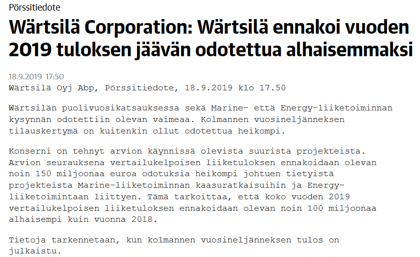 Mutta mutta, tästähän voi tulla ostopäivä. Tunnen Wärtsilän hyvin. Insinöörien taivas monella saralla. On vaan ollut niin pirun kallis. Tässä voisi nyt olla luvassa vähän pidempi ale.
