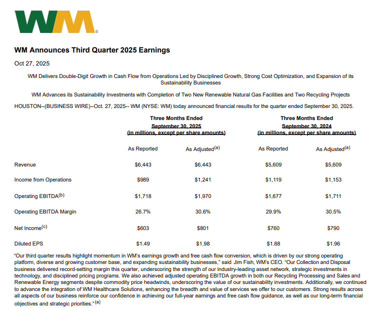 Waste Management har precis publicerat sina senaste resultat och sin plan för det kommande året.