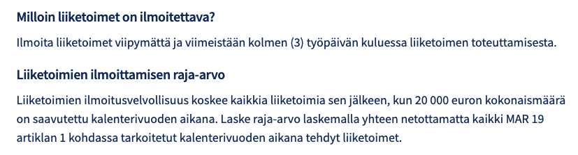 Ei löydy marraskuulta tiedotetta. Tammikuun kaupoista ei ole tarvetta tiedottaa, kun on alle rajan.