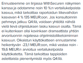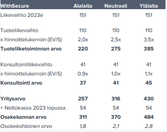 Omassa tuoreimmassa analyysissani olen hahmotellut alla olevia kertoimia WithSecurelle: