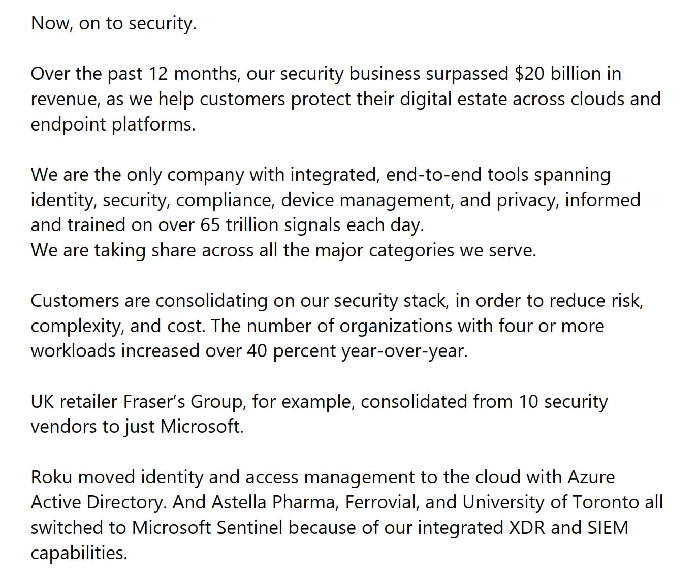 Lyhyt poiminta Microsoftin kyberturvapalveluiden kuulumisista yhtiön Q4-tuloskonffasta.