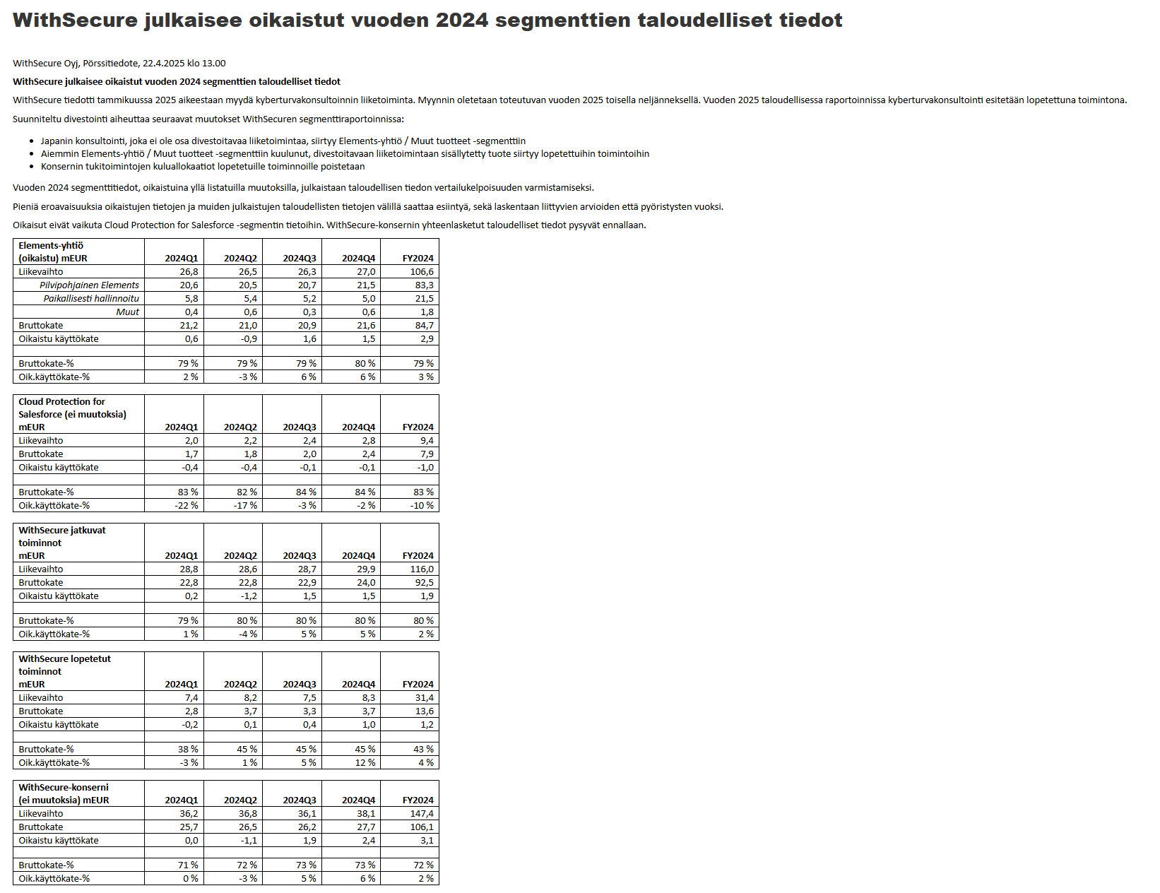 In this case, WithSecure should not be considered an investment at all, and the mentioned companies could rather be considered.