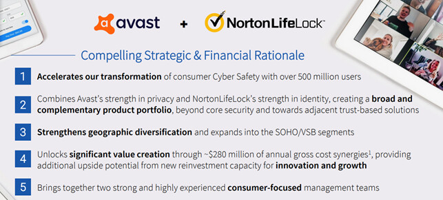 Tämä on F-Securen kannalta mielenkiintoinen diili, kun yhtiön kaksi suoraa kuluttajatietoturvan kilpailijaa lyö hynttyyt yhteen. Diilin myötä markkinoille syntyy entistä suurempi pelkästään kuluttajatietoturvaan keskittyvä yhtiö. Järjestelyn logiikkaa perusteellaan mm. toisiaan täydentävillä tuoteportfolioilla sekä maantieteellisen peiton kasvattamisella. Odotettavissa myös kulusynergioita päällekkäisiä toimintoja karsimalla ja oletettavasti myös tiettyjen skaalaetujen kautta. Isossa kuvassa kuluttajatietoturvassa kasvunäkymät ovat melko vakaat ja arvonluonti tulee vahvan kassavirran luonnista, jota jakaa osakkeenomistajille osinkojen ja omien osakkeiden ostojen kautta.
