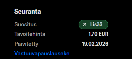 Vähän maltillisemmalla suosituksella eteenpäin, mikä on ymmärrettävää tuon asiantuntijamäärän kehityksen sekä verrokkien kurssilaskettelun myötä.