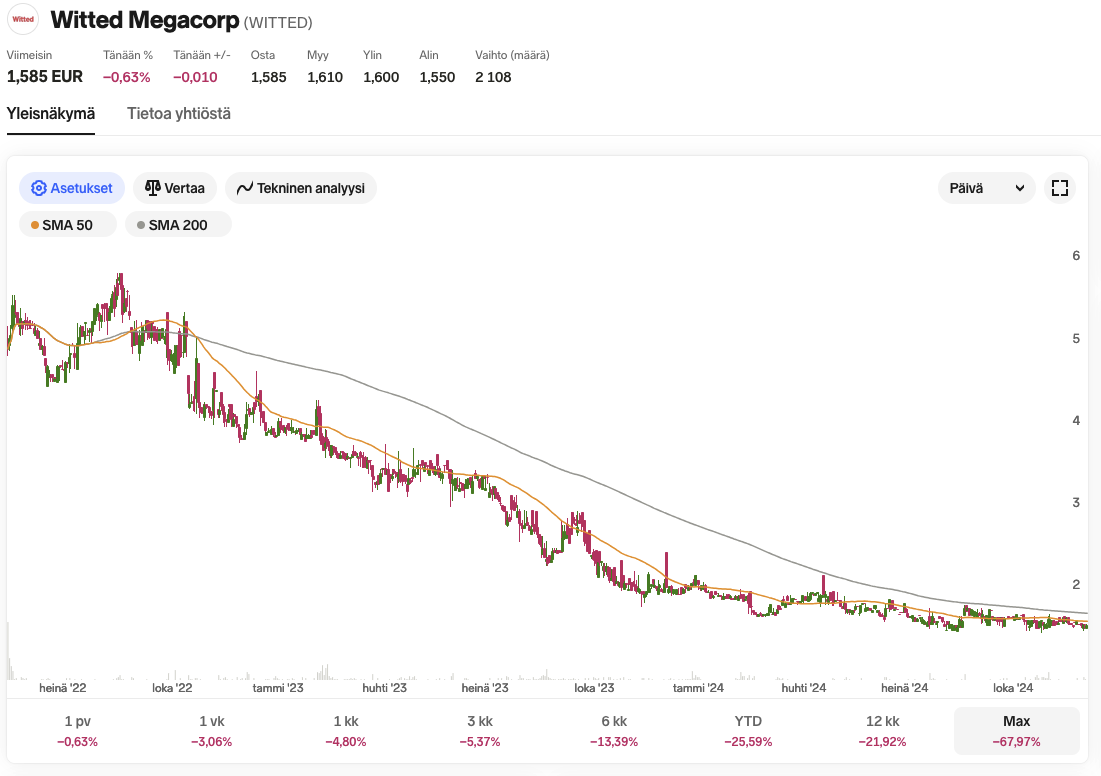 Olen itsekin ihmetellyt tätä, sekä tarkkailijana että konsolidoijan näkökulmasta. Ei ole salaisuus, että Witted haluaa kasvaa sekä orgaanisesti että epäorgaanisesti. Tämä on tarkoittanut, että merkittävä osa ajastani on mennyt sopivien sijoitusmahdollisuuksien etsimiseen. Se ei ole ollut helppoa.