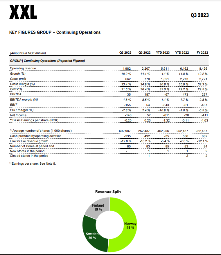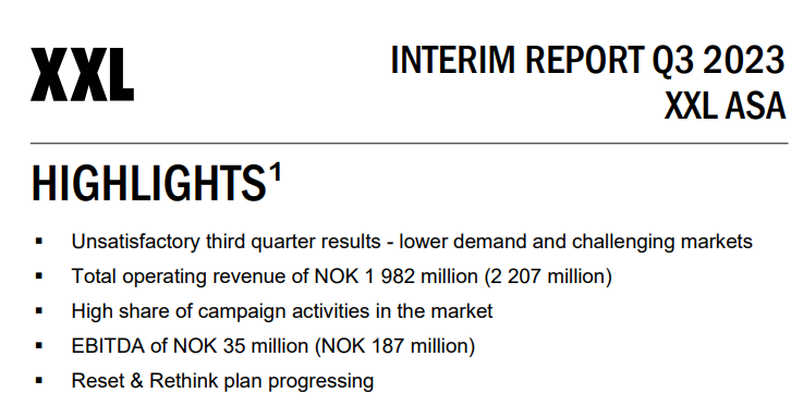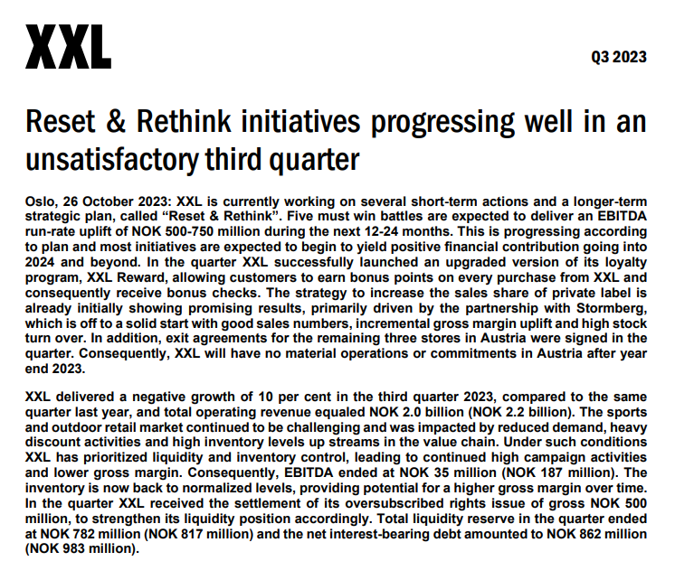 Jeg har holdt øje med denne, og i dag kom Q3-opdateringen, så jeg pinger lige om det. Selv de i forvejen lave forventninger var for meget for XXL.