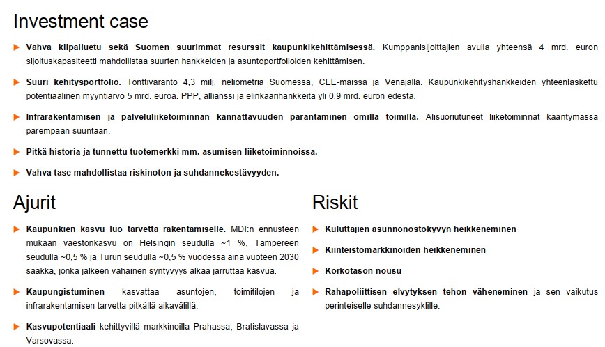 Olihan tämä tulosvaroitus, muttei pelkästään pahaa. Näkymiä ja kertaeriä avattiin sijoittajille aika avoimesti tässä vaiheessa. Hyvä jos taloja valmistuu ja kauppa käy.