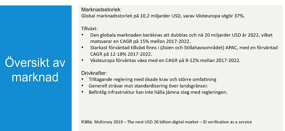 Tillväxten stöds av digitalisering, växande marknader för identitetsverifiering/nya branscher samt reglering