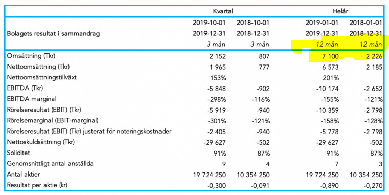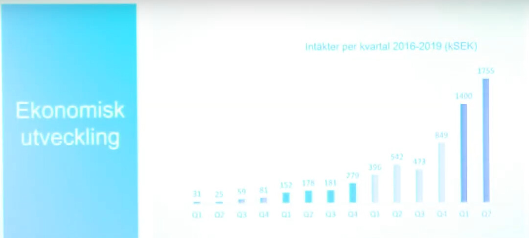 Omsättningen är fortfarande liten, men företaget växer snabbt (2020 >100%/år?)