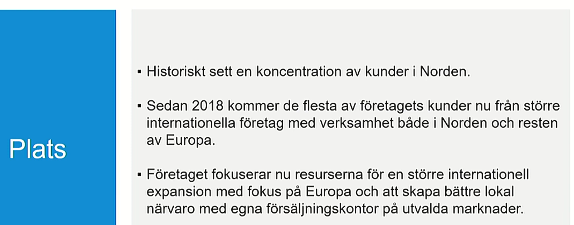 Geografisk expansion utanför Skandinavien har påbörjats (USA, Asien, Centraleuropa, Afrika)